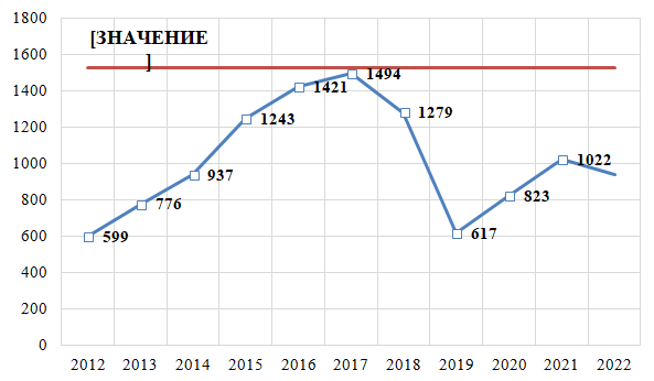 В 2021 г. зарегистрировано 1 022 преступления против основ конституционного строя и безопасности государства, по состоянию на 1 сентября 2022 г. за прошедшие 12 месяцев значение показателя составило 1 206 преступлений, что не превышает критического уровня (рис. 1).