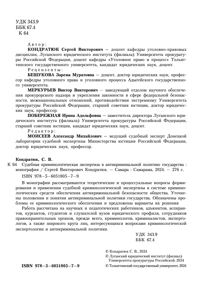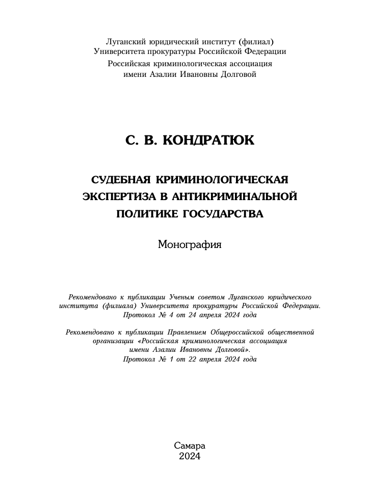 Кондратюк_Криминол экспертиза_Монография_2024 Навигация по записям Сборник III Всероссийской научно-практической конференции «Личность преступника в изменяющемся мире» (Долговские чтения) Сборник материалов конференции “Новые, появляющиеся и видоизменяющиеся формы преступности: научные основы противодействия” (Долговские чтения)