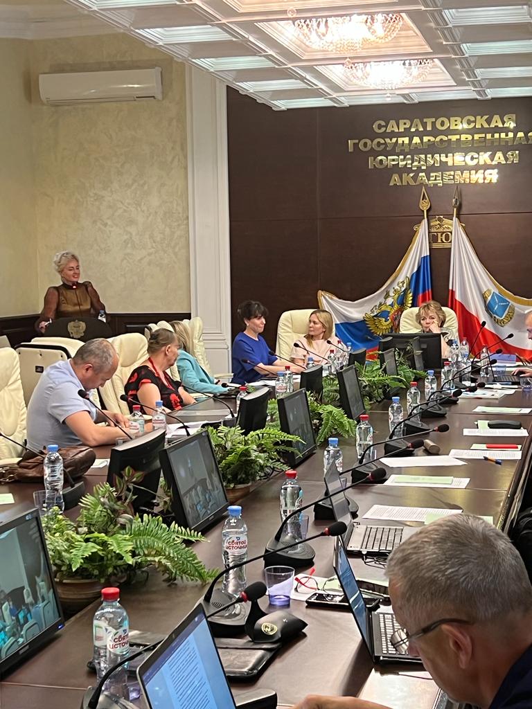 В «Саратовской государственной юридической академии» состоялась рабочая встреча филиалов Российской криминологической ассоциации по Приволжскому и Южному федеральным округам, в ходе которой Вице-президенту Ассоциации д.ю.н., профессору Александру Николаевичу Варыгину передан ее символ – флаг.