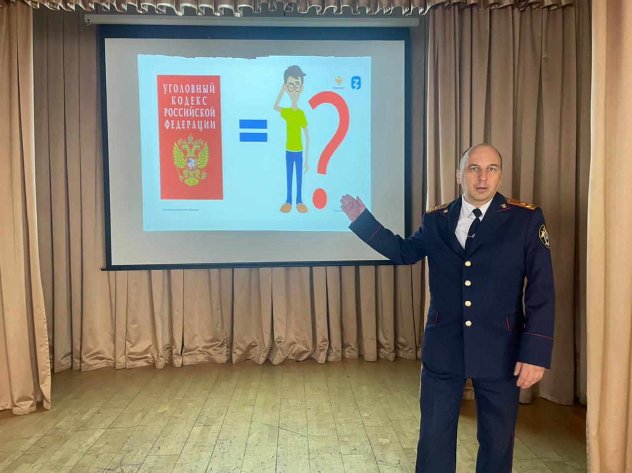 Занятие, проведенное с учениками, было посвящено вопросам правового обучения и профессиональной ориентации. В ходе лекции Вячеслав Викторович Лавринов рассказал учащимся гимназии, для чего необходим уголовный закон и о чем он говорит, какие преступления чаще всего совершаются, какие наказания предусмотрены за их совершение и как самим следовать букве закона.
